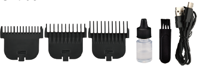DC 5V/1A 5W Motor speed:7000RPM Lithium battery:1200mAh Charging time:2h Use time:180min Accessories:3guide combs (1.5/3/4.5mm),cleaning brush, lubricating oil,Type-C USB cable Gift box ![]()