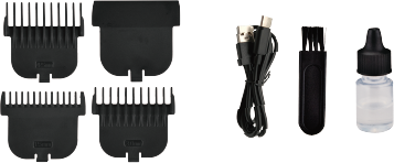 DC 5V/1A5W Motor speed:6500RPM Lithium battery:1200mAh Charging time:2.5h Use time:180min Accessories:3guide combs(1.5/ 3/4.5mm),protect cover, cleaning brush,lubricating oil,Type-C USB cable Gift box ![]()