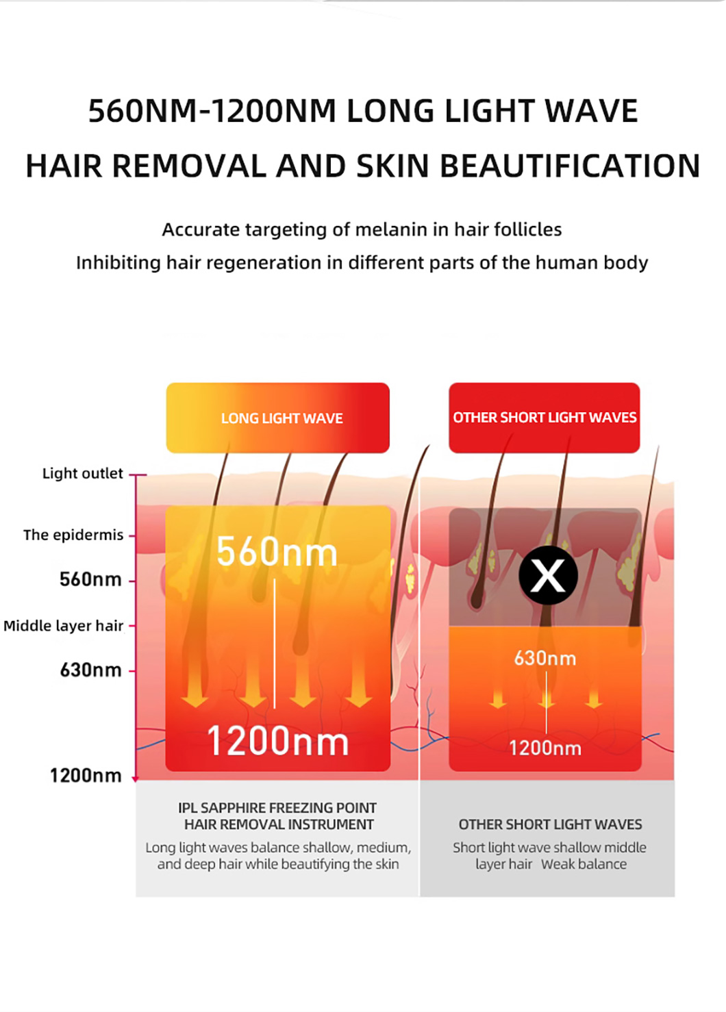 Energy:7-14 Joule Intensity:1-9 levels llluminated area:3cm² Flash interval:1.4-2.8S Usage times:999,999 flashes Skin Color Recognition Mode Introduction: 1. HR:Hair Removal(1-9levels) 2.SC:Skin Rejuvenation(1-9levels) 3.RA:Remove Acne(1-9levels) Wave length:530-1200nm ![]() ![]() ![]() ![]() ![]() ![]() ![]() ![]() ![]()